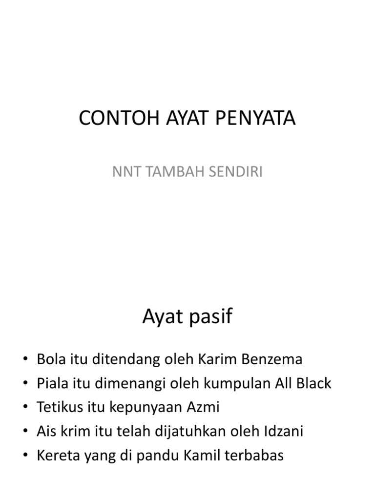 . S4AYAT PENYATA DAN AYAT TANYA Pecahkan belon. Contoh ayat aktif dalam harian metro. Contoh ayat bahasa inggeris singular tingkatan 1.